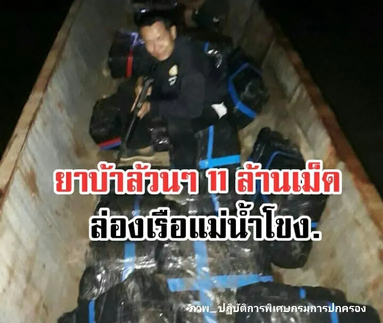ยึดยาบ้า 37 กระสอบ 11 ล้านเม็ด ลักลอบข้ามแม่น้ำโขงจับผู้ต้องหาได้ 1 ราย