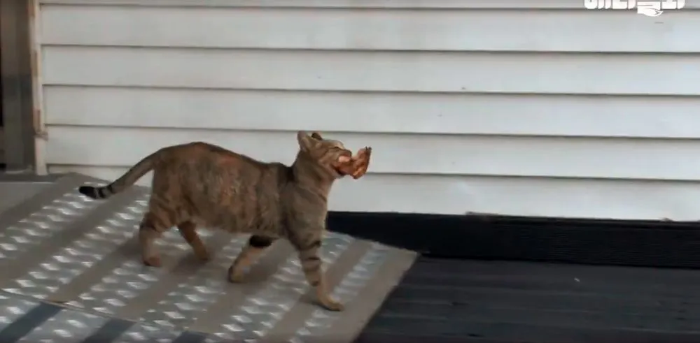 แมวผู้เป็นแม่ มารอขอหมูย่างทุกวัน เพื่อจะนำไปให้ลูกๆของมัน