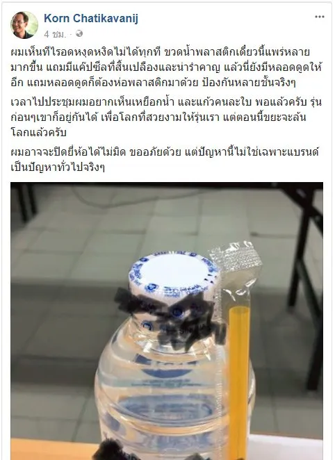 เป็นเรื่องเล็กๆที่น่าคิด กับการเสิร์ฟน้ำในการประชุมต่างๆ แทนที่จะเสิร์ฟขวดน้ำพลาสติส พร้อมด้วยพลาสติกห่อหุ้มต่างๆอีก หากเราเปลี่ยนเป็นแก้วน้ำ ก็จะช่วยกันลดขยะให้กับโลกใบนี้ได้ โดยเรื่องนี้คุณกรณ์ จาติกวณิช ได้โพสท์ใน facebook Korn Chatikavanij ว่า