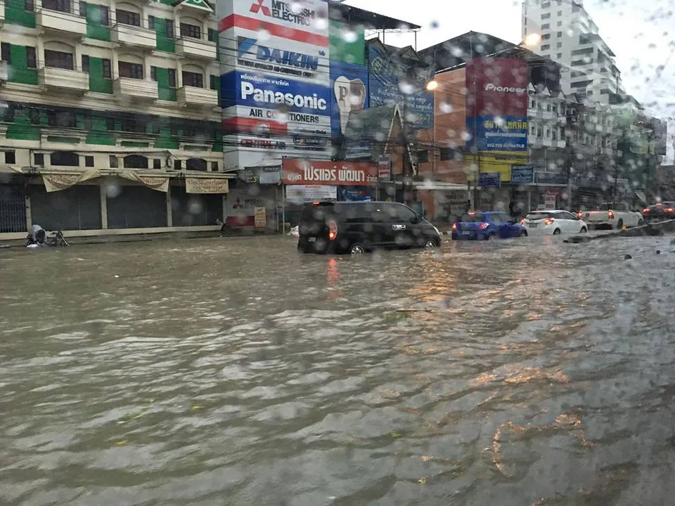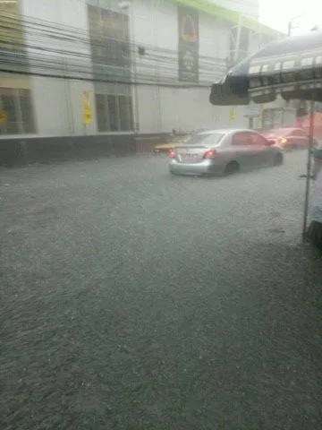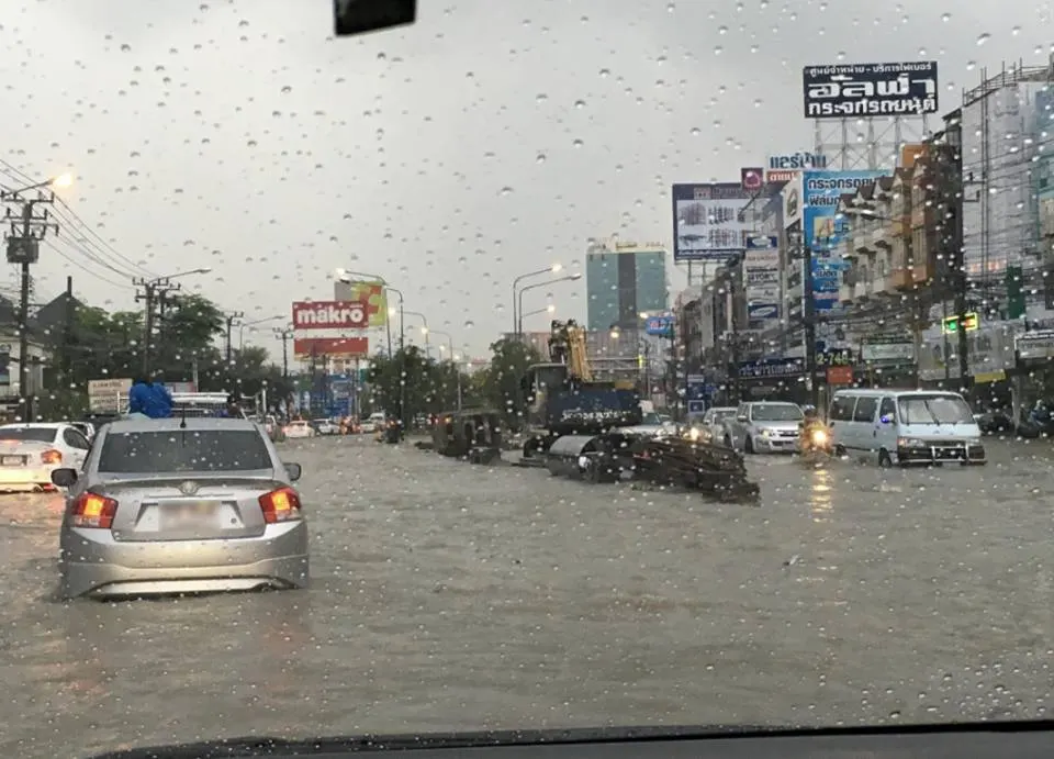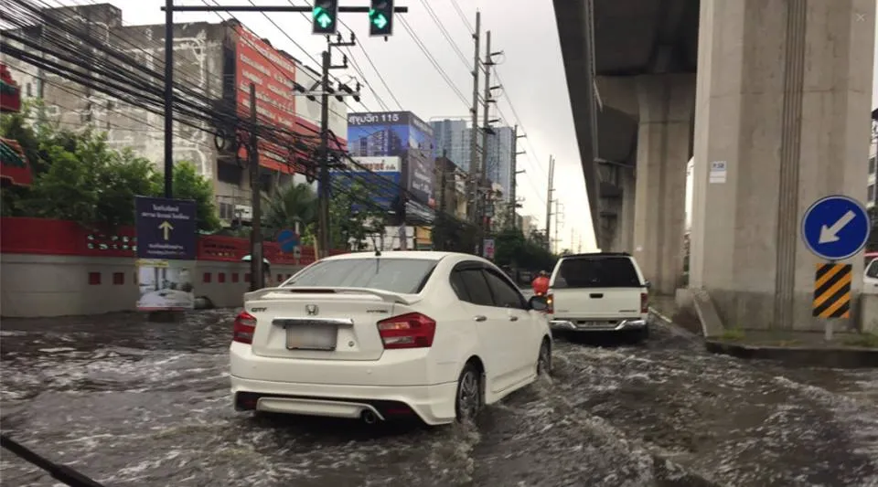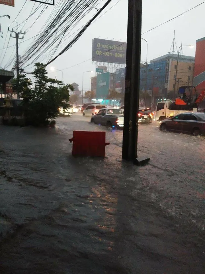 08.00น. ศรีนครินทร์ ฝนตกหนัก มีน้ำท่วมสูง รถจอดเสียหลายจุด การจราจรติดขัด !!