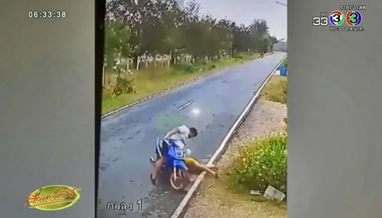 อุทาหรณ์ !! เด็กหญิงผูกเสื้อกันหนาวที่เอว ชายเสื้อเข้าไปพันโซ่รถ จยย.ดึงร่างตกกระแทกพื้นเจ็บ