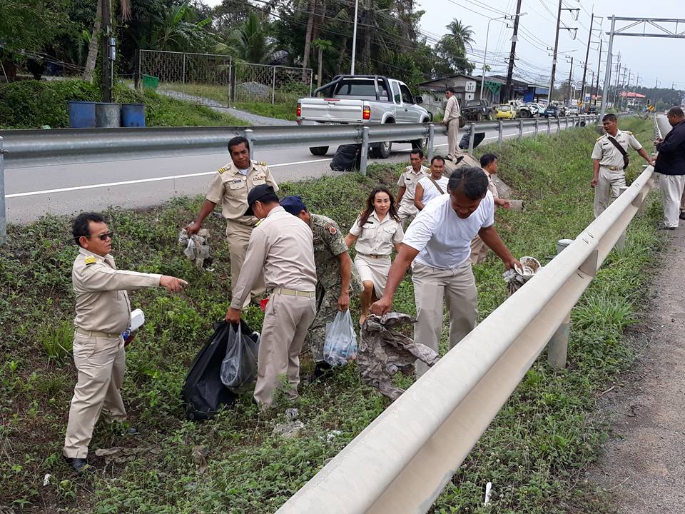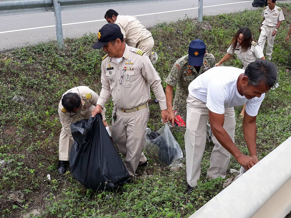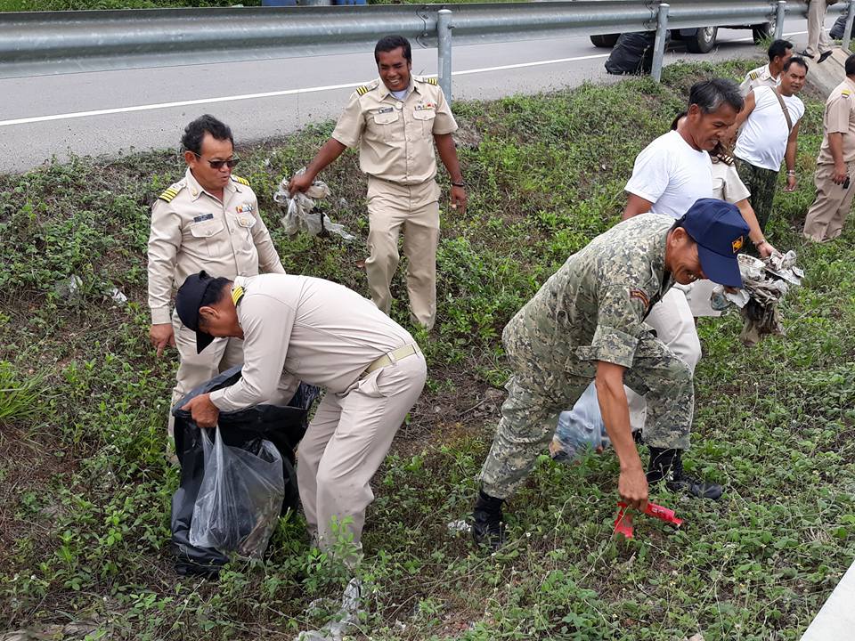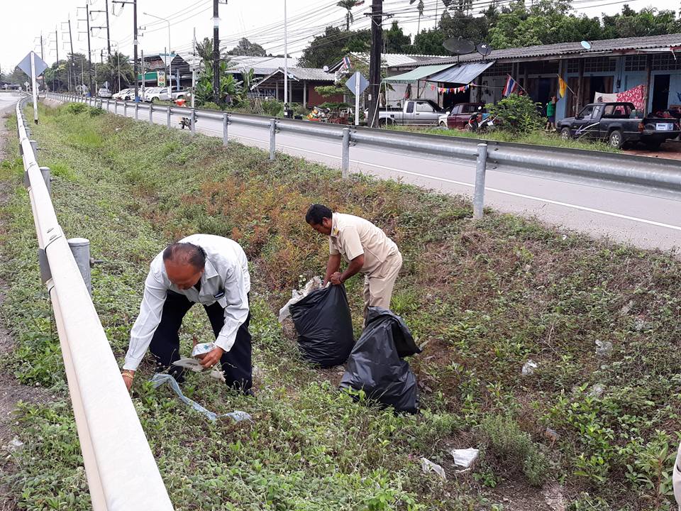 นายอำเภอมะขาม นำทีมกำนันผู้ใหญ่บ้านเก็บขยะริมถนน นำร่องการรวมพลังดูแลรักษาความสะอาดในพื้นที่สาธารณะ