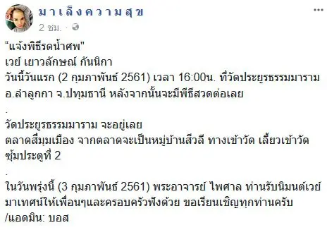 แฟนเพจมาเล็งความสุขเศร้า..เวย์ เยาวลักษณ์ ผู้ประกาศข่าวช่องNBT เสียชีวิตแล้ว