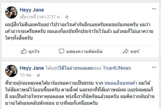 แต่ยังไม่มีการแก้ข่าวใดๆผมจึง ขอโอกาสชี้แจงกับเพจต่างๆ ขอความเป็นธรรมให้กับน้องสาวผมด้วยครับ
