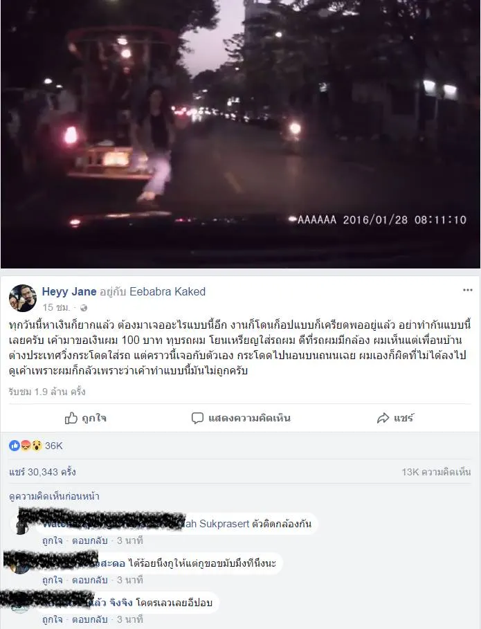 จากกกรณีเมื่อวันที่ 1 กุมภาพันธ์ 2561 โลกออนไลน์เผยคลิป สาวนิรนาม แกล้งล้มฟุบหน้ารถและเรียกร้องเงิน โดยได้โพสท์ไว้ว่า
