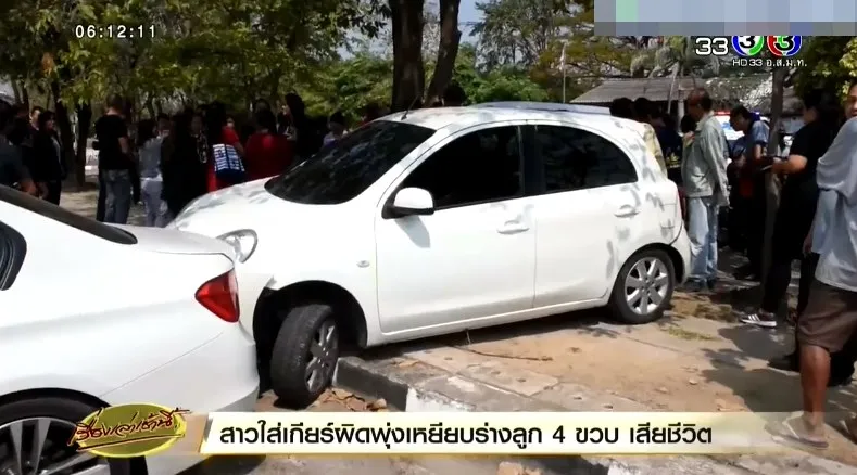 จากการสอบถามผู้เป็นแม่ ให้การว่า ได้เดินทางมาสอบใบขับขี่ พร้อมเพื่อนชายหญิง อีก 2 คน และยังมีเด็กอายุระหว่าง 4-7 ขวบ อีก 4 คน โดยมีลูกของตนรวมอยู่ด้วย โดยได้ทำการจอดรถไว้ในช่องจอดรถตามปกติ ก่อนเกิดเหตุได้ลงมาที่รถเพื่อจะถอยหลัง โดยได้ให้เด็กๆ ทั้ง 4 ยืน รออยู่บนฟุตปาธด้านหน้ารถ แต่จังหวะเข้าเกียร์ถอย เกิดพลาดเข้าเกียร์ผิด รถจึงพุ่งขึ้นฟุตปาธไปชนเด็ก จนเป็นเหตุให้ลูกสาวเสียชีวิต และเด็กชายได้รับบาดเจ็บ ดังกล่าว