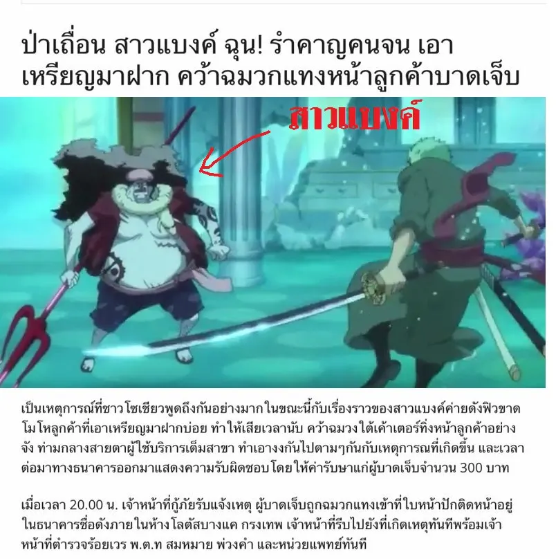 โดยเนื้อหาข่าวระบุว่าชาวโซเชียวพูดถึงกันอย่างมากในขณะนี้กับเรื่องราวของสาวแบงค์ค่ายดังฟิวขาดโมโหลูกค้าที่เอาเหรียญมาฝากบ่อย ทำให้เสียเวลานับ คว้าฉมวงใต้เค้าเตอร์ทิ่งหน้าลูกค้าอย่างจัง ท่ามกลางสายตาผู้ใช้บริการเต็มสาขา ทำเอางงกันไปตามๆกันกับเหตุการณที่เกิดขึ้น และเวลาต่อมาทางธนาคารออกมาแสดงความรับผิดชอบโดยให้ค่ารับษาแก่ผู้บาดเจ็บจำนวน 300 บาท