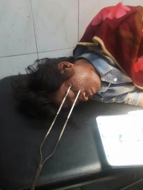 ที่เกิดเหตุในธนาคารค่ายดังแห่งหนึ่ง บริเวณจุดที่รอฝากเงิน พบผู้บาดเจ็บชื่อนาย พงษ์กร จันทร์หอม อายุ 30ปี อาชีพคนงานก่อสร้าง ถูกฉมวกสองแฉกความยาว5เมตร ทิ่มปักเข้าที่ใบหน้าฝังติดกระดูก นอนร้องด้วยความเจ็บปวดขอความช่วยเหลือ เจ้าหน้าที่จึงช่วยนำตัวส่งโรงพยาบาลใกล้เคียงก่อนส่งเรื่องให้เจ้าหน้าที่ตำรวจสอบสวนต่อ