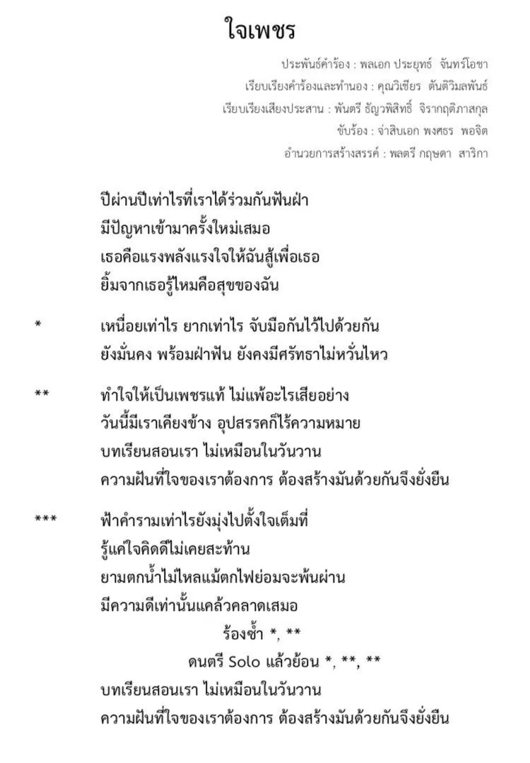 ฟังกันได้แล้วเพลงใหม่ประยุทธ์ “ใจเพชร” เพชรแท้ตกน้ำไม่ไหลตกไฟไม่ไหม้ด้วยความดี