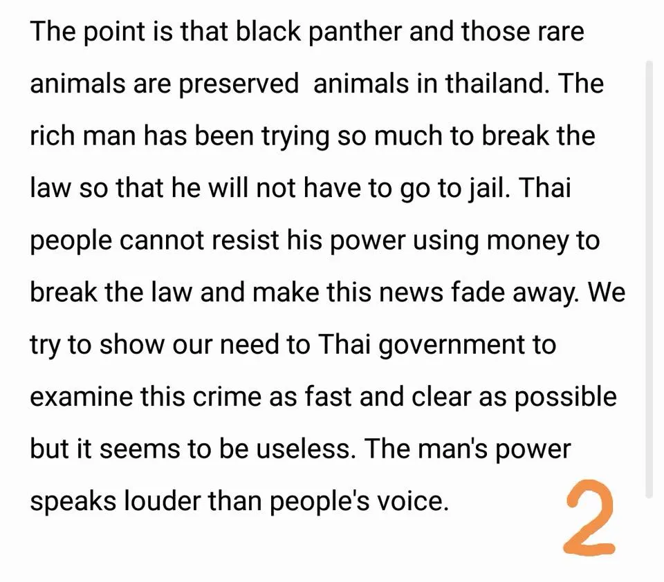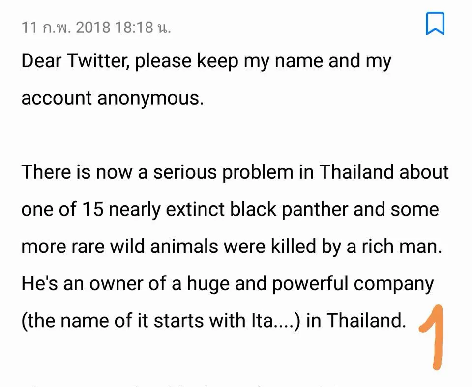 พอดีเจ้าของทวิต #BlackPantherWasKilledinThai ที่รวบรวมข้อมูลเรื่องCEOล่าเสือดำในทุ่งใหญ่นเรศวร เพื่อเรียกร้องความเป็นธรรมให้เจ้าสัตว์ใหญ่ผู้น่าสงสาร แจ้งมาว่า หลังจากลงไม่นาน ทุกบัญชีถูกระงับหมด ควีนเลยอยากลองดูว่า ถ้าลงเองมันจะดับไหม พลังโซเชียลมันยิ่งใหญ่ อย่าให้อำนาจเงินของคนกระจุกเดียว ทำให้เสียงของเรามันแผ่วเบา
