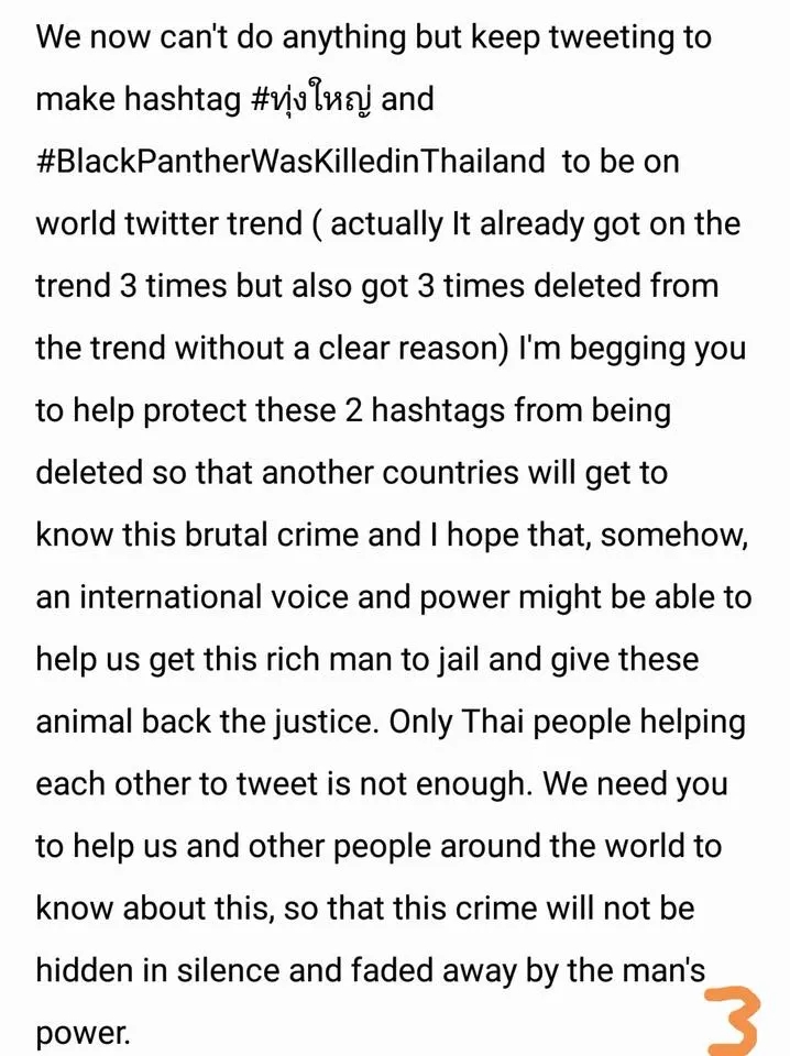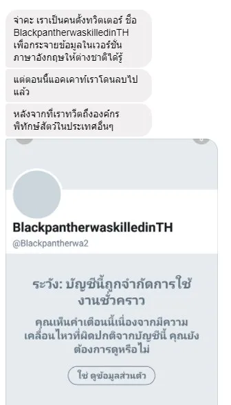 ถูกลบ-ถูกระงับทันที!! เมื่อมีการโพสต์เรื่องราว และติดแฮชแท็ค #BlackPantherWasKilledinThailand #ทุ่งใหญ่ ลงในทวิตเตอร์