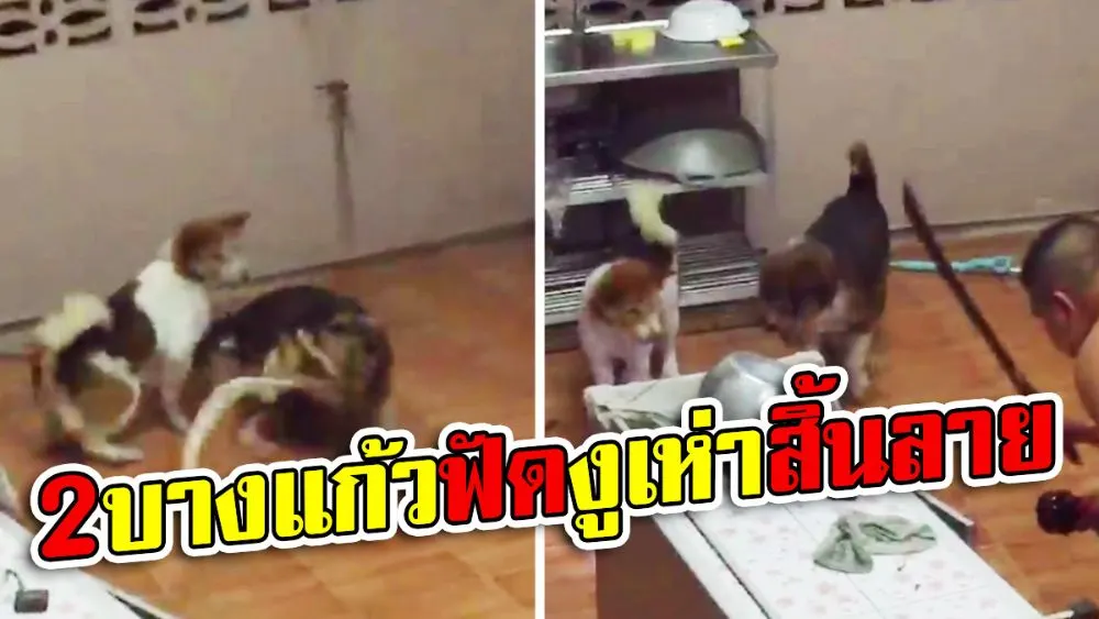 งูเห่าเลื้อยเข้าบ้านเจ้านาย 2สุนัขพันธ์บางแก้ว "ส้มตำ-น้ำตก" ไล่ฟัดงูเห่าสิ้นลาย
