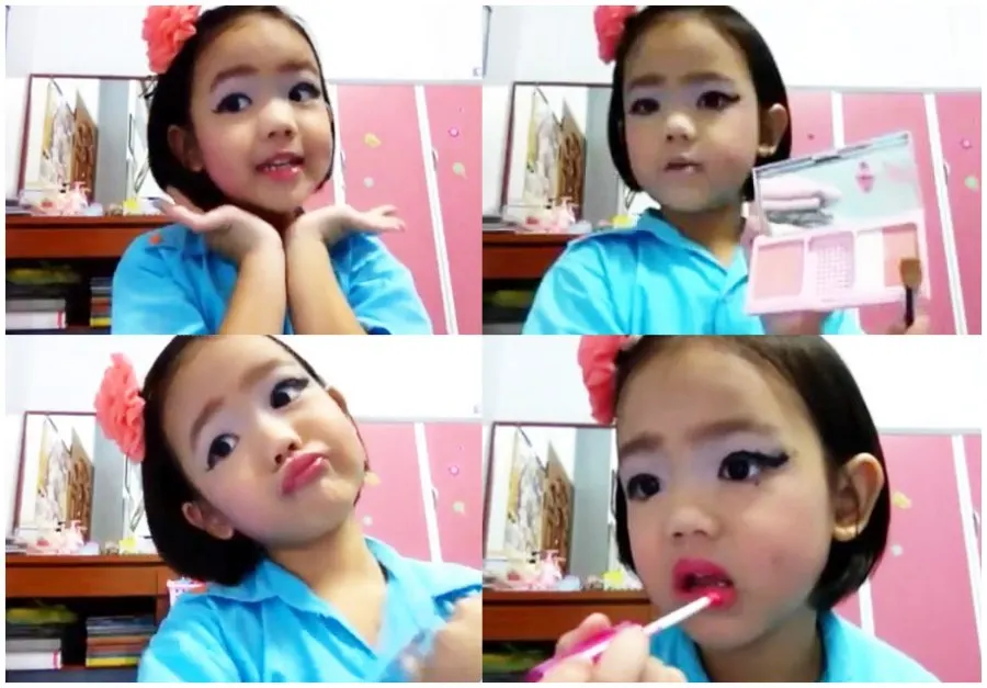 ภาพเมื่อครั้งสอนแต่งหน้าแรกๆในวัยเพียง 4 ขวบ