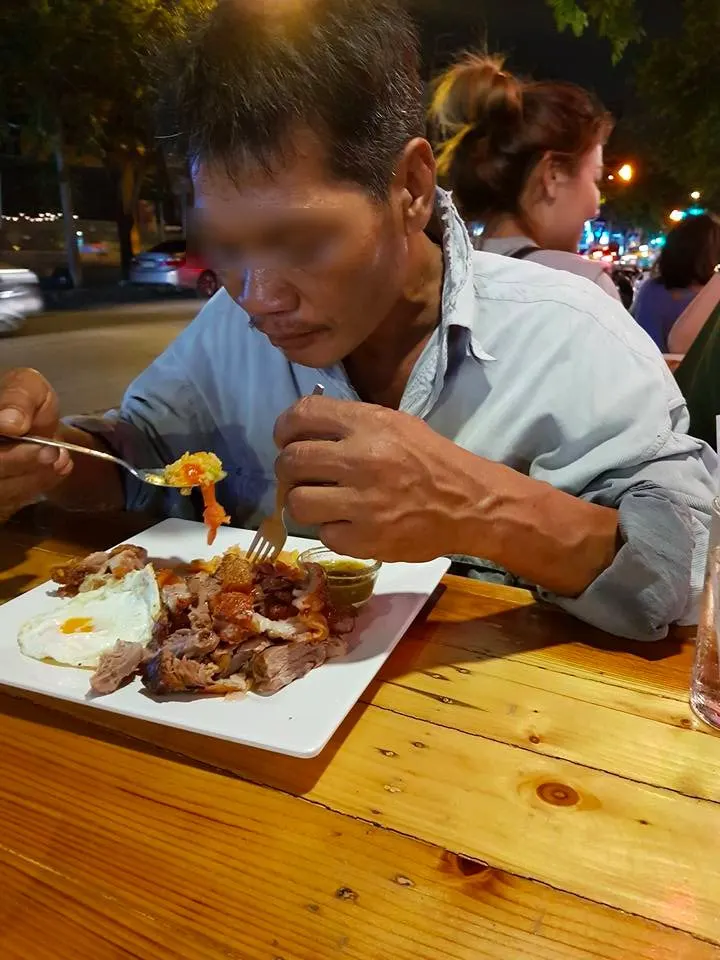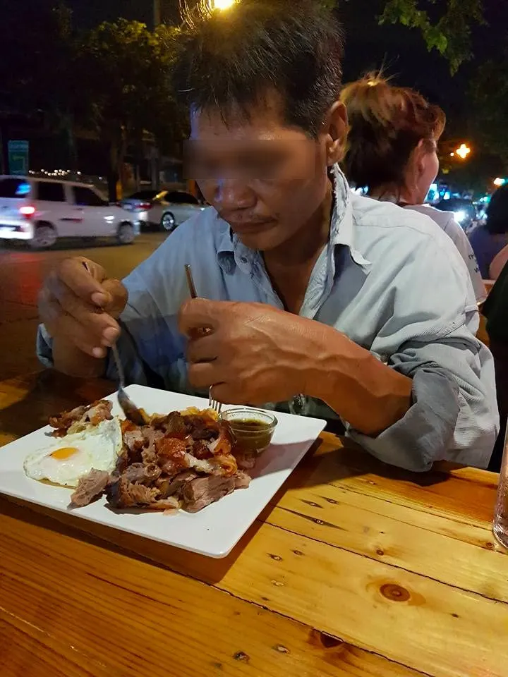 หลังเลิกงานอยากกินสเต็ก เลยแวะไปร้านในซอยหอ พอนั่งปุ้ปก็เห็นลุงคนนี้ ยืนยกมือไหว้ขอเงินโต๊ะข้างๆ ตอนแรกเรามองก็ไม่อะไร ซักพักแกเดินมาโต๊ะเรามาขอเงินกินก๋วยเตี๋ยวซักถ้วย เราก็บอกพี่อยากกินอะไร ถ้าหิวมานั่งกินกับผมเลย เดี๋ยวผมเลี้ยงเอง แต่ถ้าจะขอเงินผมไม่ให้นะ