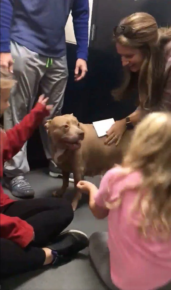 เจ้าตูบพิทบูลถูกทิ้งน้ำตาคลอ-นั่งคอตก กระดิกหางสุดดีใจหลังได้ครอบครัวใหม่
