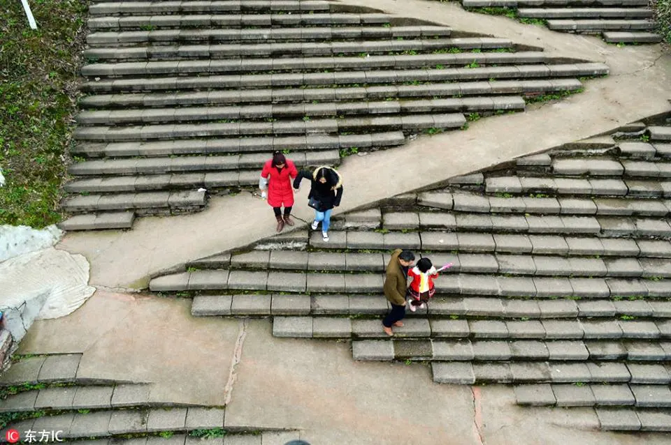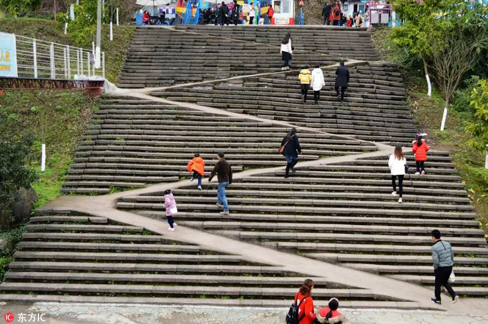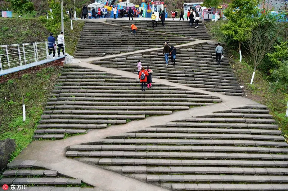 ชมภาพของสะพานขึ้นเขาแห่งหนึ่ง ในเทศบาลนครฉงชิ่ง เทศบาลนครฉงชิ่ง พื้นที่ที่เต็มไปด้วยขุนเขา ซึ่งตั้งอยู่ทางตะวันตกเฉียงใต้ของประเทศจีน สะพานขึ้นเขาแห่งนี้ไม่ได้มีแค่ขั้นบันไดธรรมดา แต่แฝงไว้ด้วยทางลาดซิกแซก เพื่ออำนวยความสะดวกแก่คนพิการ ผู้สูงอายุ และเด็ก ๆ