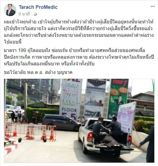 ห้างดังเคลื่อนย้ายร่าง พล.ต.อ.สล้าง ผ้าดำคลุมใส่รถกระบะ ถกทำถูกวิธีหรือไม่!