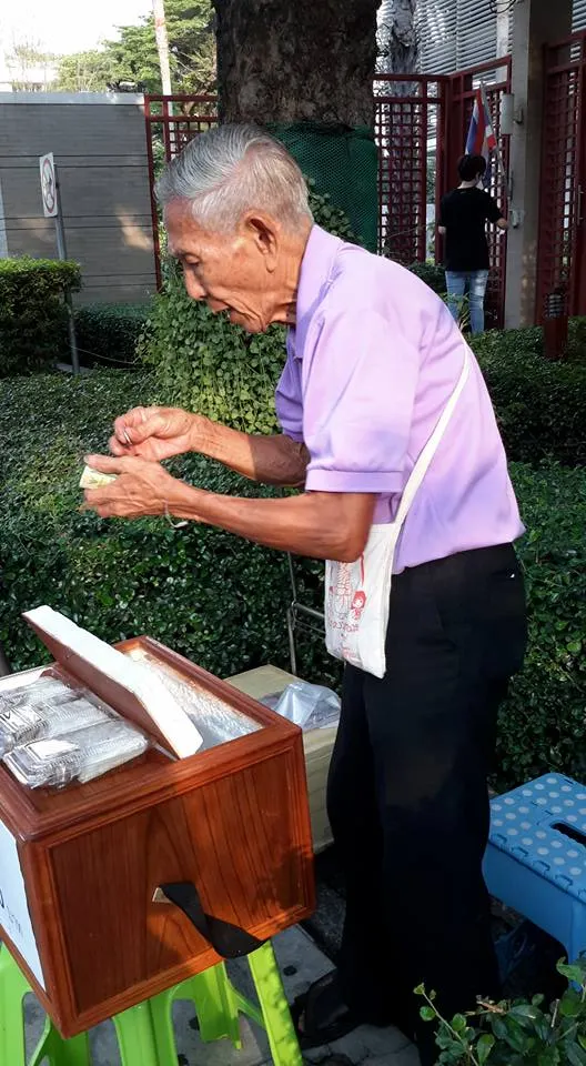 ชีวิตยังต้องดิ้นรน แม้วัย 81 แล้วก็ตาม หนำซ้ำยังโดนคนใจบาปงัดห้องเช่า ขโมยเงินทุนที่ไว้ซื้อของมาทำขายอีก เรื่องราวของคุณลุงถูกเล่าผ่านผู้ใช้เฟซบุ๊คชื่อ ไอ แอม ไตเติ้ล โดยได้เล่าว่า