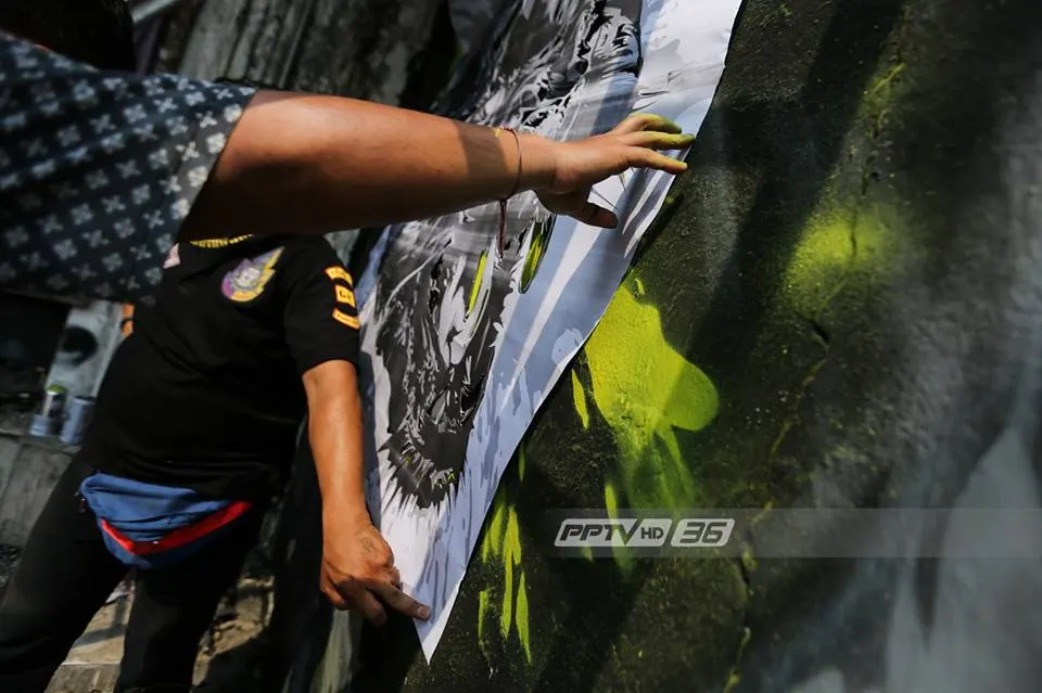 “ศิลปินกราฟฟิตี้” วาดภาพบนกำแพง เรียกร้องความยุติธรรมให้เสือดำ