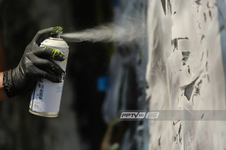 จัดหนักดูซิใครจะลบ!! “ศิลปินกราฟฟิตี้” วาดภาพบนกำแพง เรียกร้องความยุติธรรมให้เสือดำ เยื้องตึกอิตาเลียนไทย