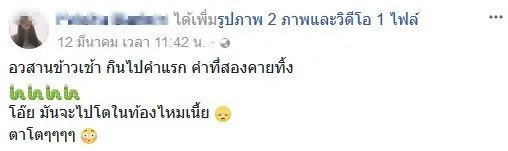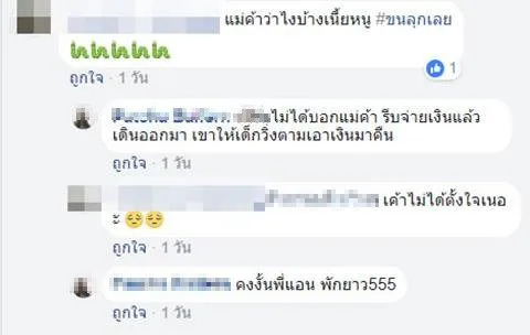 ซึ่งเธอยังเล่าว่า หลังจากถ่ายคลิปเสร็จก็รีบจ่ายเงินและออกจากร้านแต่แม่ค้าได้ให้เด็กเสริฟวิ่งตามมา เอาเงินมาคืน.