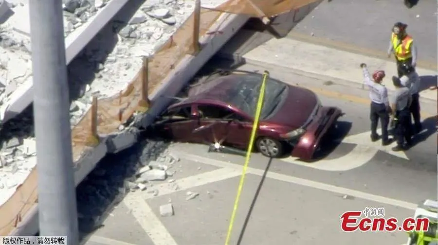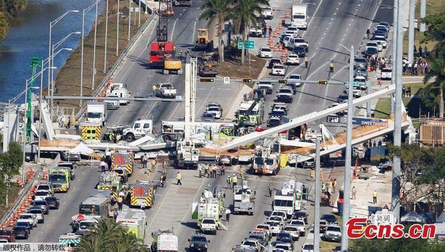 สลด! สะพานลอยสร้างใหม่ถล่มในฟลอริดา บดขยี้รถ 8 คัน ดับแล้ว 4 ราย