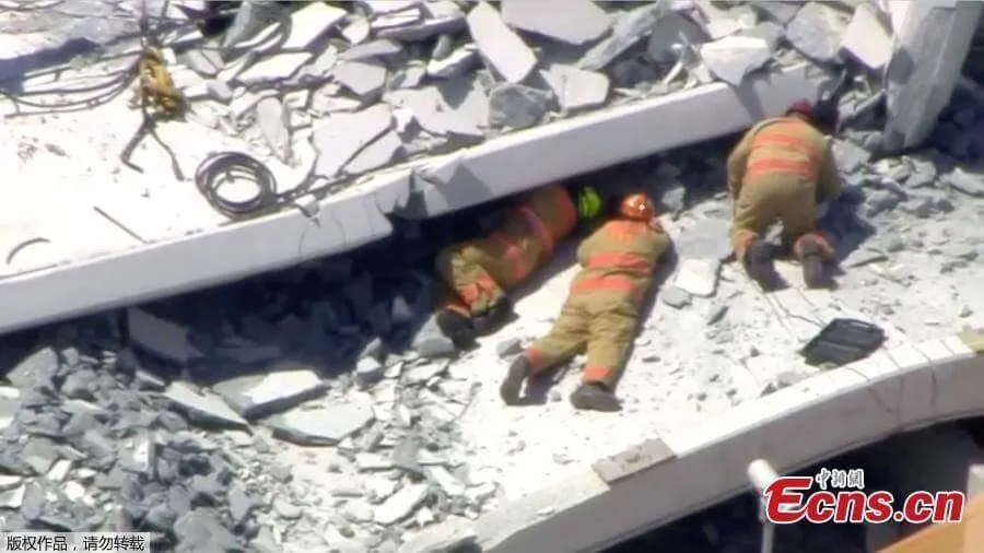 รายงานระบุว่าทีมเจ้าหน้าที่กู้ภัยเร่งค้นหาสัญญาณผู้รอดชีวิตใต้ซากปรักหักพังของตัวสะพานคอนกรีต ความยาว 53 เมตร น้ำหนัก 950 ตัน ซึ่งเพิ่งติดตั้งเหนือถนนหลวงแปดเลนเชื่อมมหาวิทยาลัยฯ กับเขตที่พักของนักศึกษา เมื่อวันเสาร์ (10 มี.ค.) ที่ผ่านมา