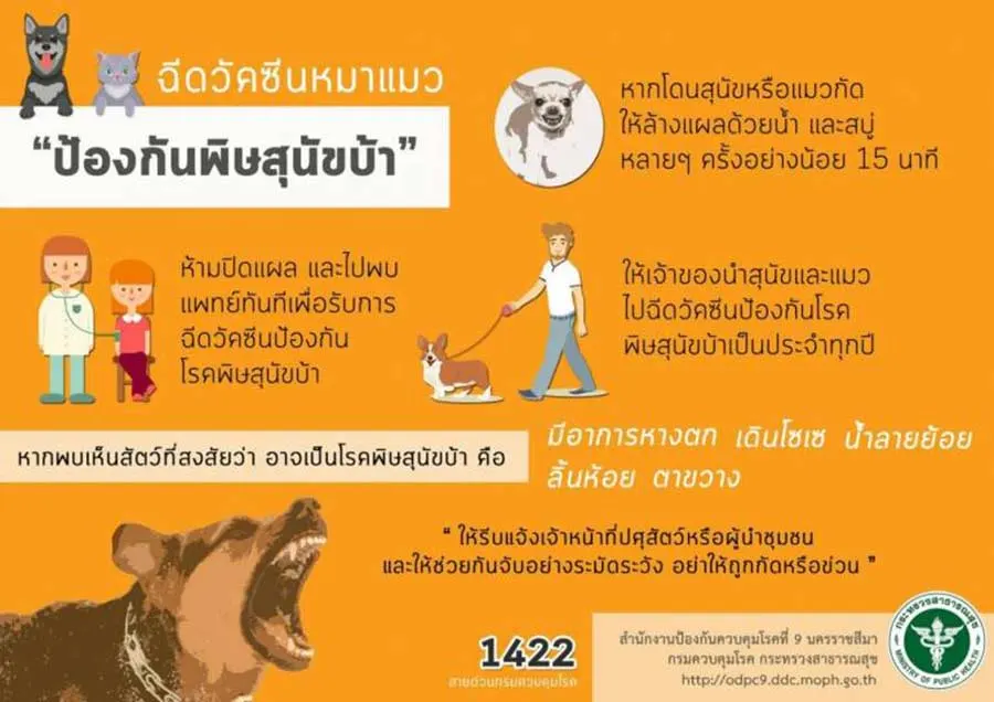 เมื่อวันที่ 16 มี.ค.61 ด้าน นพ.สุรินทร์ สืบซึ้ง นายแพทย์สาธารณสุขจังหวัดประจวบคีรีขันธ์ กล่าวว่า สาธารณสุขจังหวัดประจวบคีรีขันธ์ ต้องยกระดับเป็นพื้นที่สีแดงหรือพื้นที่โรคระบาด ซึ่งเป็นอันตรายสำหรับคน พร้อมเร่งค้นหาบุคคลที่สัมผัสกับแมวตัวที่กัดชายวัย 61 ปี เสียชีวิต ในรอบ 2 เดือน เพื่อรับวัคซีนโดยด่วน พร้อมกับประชาสัมพันธ์ให้ประชาชนที่สัมผัสหรือถูกสัตว์เลี้ยงลูกด้วยนมกัดให้รีบรับวัคซีนป้องกันโรคพิษสุนัขบ้าทันที เพราะหากปล่อยทิ้งไว้เชื้อโรคพิษสุนัขบ้าจะมีระยะอยู่ในร่างกายได้ 6 เดือน – 1 ปี ซึ่งหากเป็นแล้วไม่สามารถรักษาได้ และต้องเสียชีวิตทุกคน