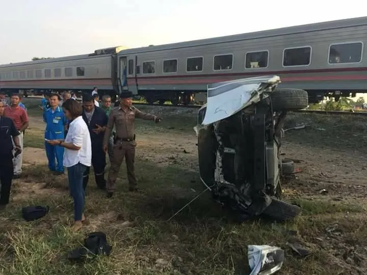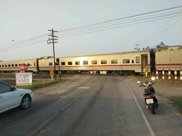 สังคมก้มหน้าไทย!! เกือบไม่รอด!! สาวคุยโทรศัพท์เพลินควบปิกอัพพุ่งเสยรถไฟทุ่งเฟื้อ-บางจาก โชคดีไร้เจ็บ