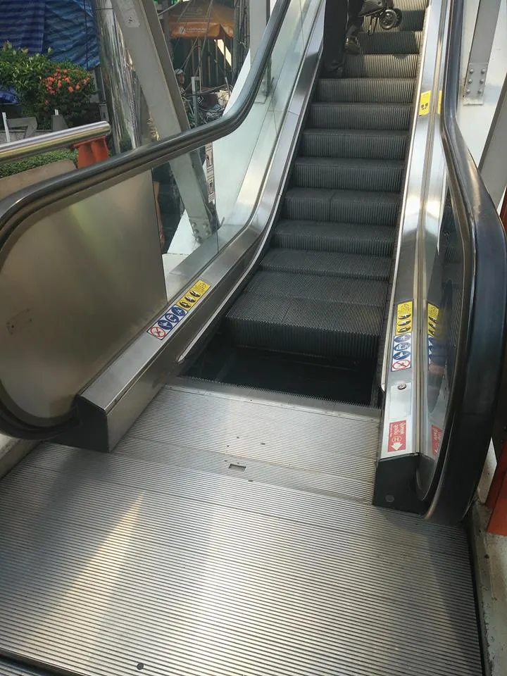 “หล่นลงมาต่อหน้าต่อตาเลย ถ้าเราก้าวเร็วกว่านี้ 5 วิ ตายแน่ๆ หัวใจจะวาย ฮืออออ..คือกำลังจะก้าวขึ้นไป มีป้าคนหนึ่ง (ไม่รู้จัก) ลากกระเป๋าลาก ขึ้นไปก่อนอยู่ข้างหน้า เสี้ยววินาทีที่ป้าขึ้นไปแล้ว แล้วบันไดเลื่อนขึ้นไป 1 ขั้น เรากำลังจะก้าวตาม ที่ที่ป้าเคยยืน ตกลงไปข้างล่างต่อหน้าเลยจ้า แผ่นเหล็กเด้งออกมาตรงปลายเท้าเลย ช็อกมาก หัวใจจะวาย