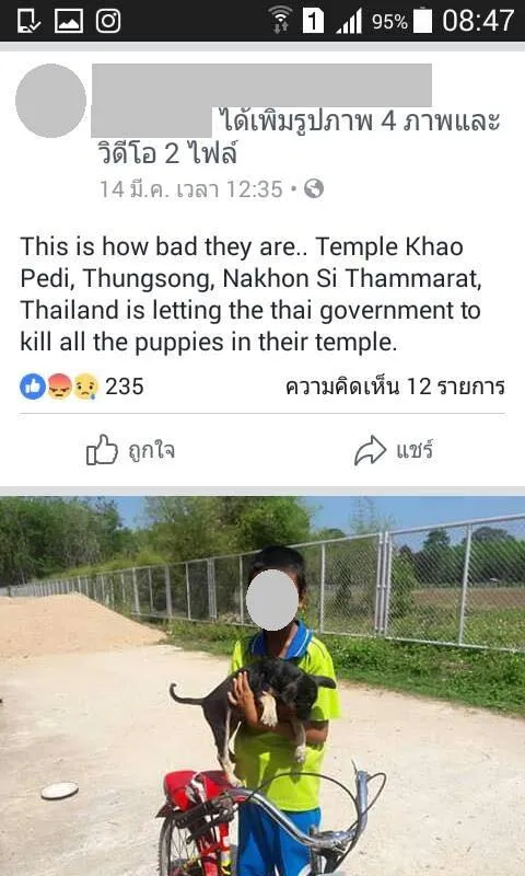 เพจดังคนรักหมาจวกยับ!! ยิ่งกว่าเดรัจฉานก็คือพวกมนุษย์ กรณี ฆ่าเหมารวมหมาและลูกหมาทั้งโรงเรียนและในวัด ทุ่งสง นครศรีธรรมราช