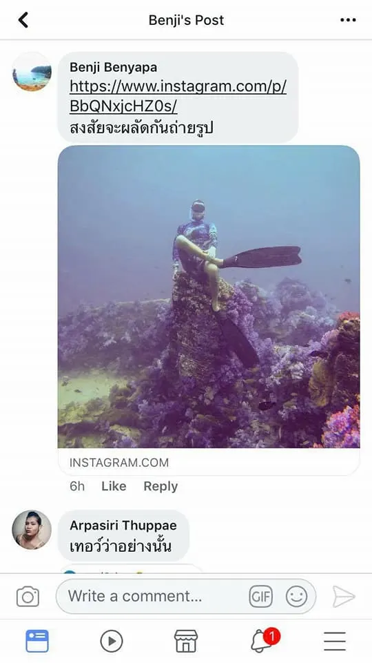 ผู้ใช้เฟซบุ๊คชื่อคุณ Jirapong Jeewarongkakul ได้โพสท์ถึงกรณี นักท่องเที่ยวชาวต่างชาติ ขึ้นนั้งบนปะการัง ถ่ายรูปลงโซเชียล ไว้ได้อย่างน่าสนใจว่า