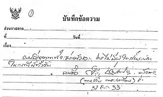 พบจดหมายลาตายของ สืบ นาคะเสถียร