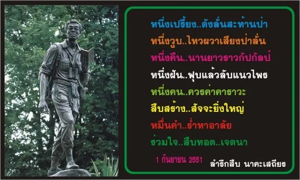 บทกลอนได้รางวัลจากการประกวดคำขวัญด้านสัตว์ป่า-ป่าไม้ครั้งที่ 3 ของ สืบ นาคะเสถียร