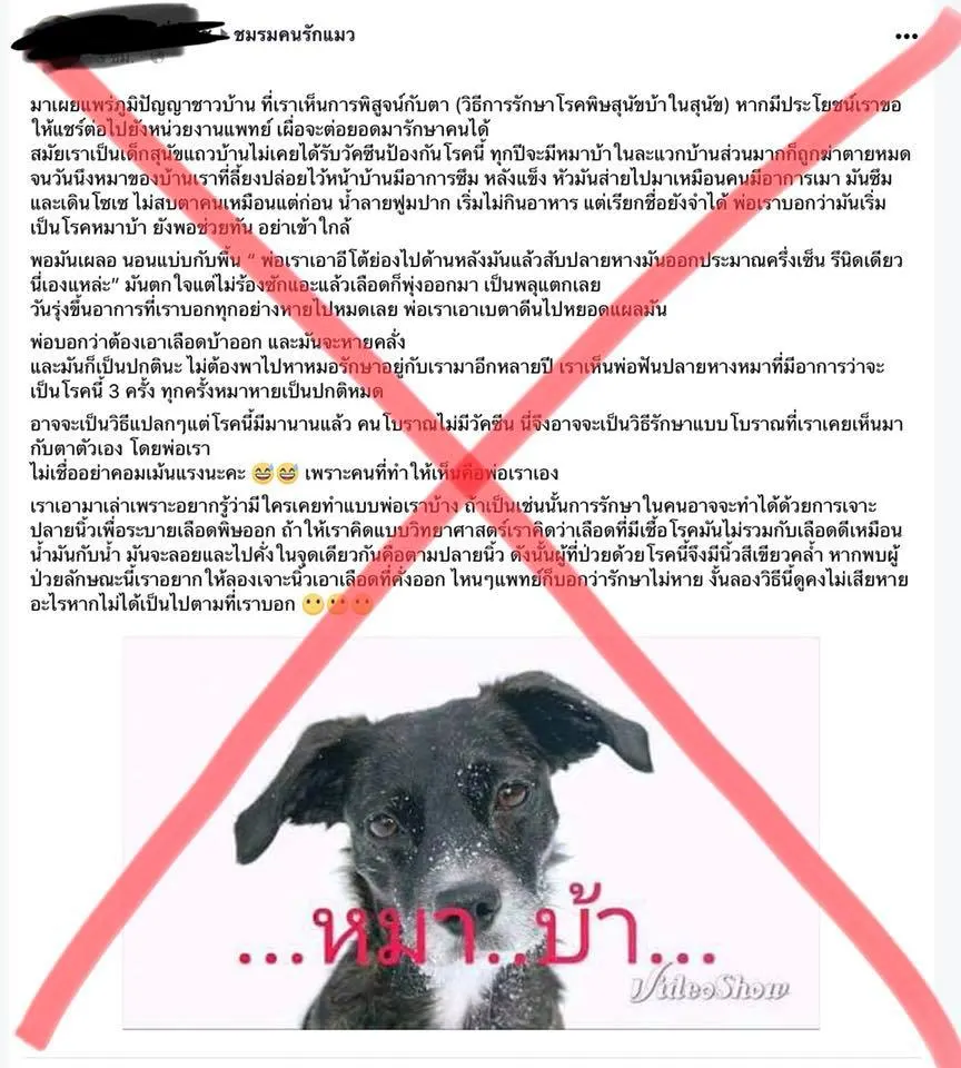 มั่วหนักทาสหมาแมว!! เพจดังเตือน ตัดหางเค้นเลือดจากปลายหาไม่ที่จะรักษาพิษสุนัขบ้าได้ นะออเจ้า อย่าหลงเชื่อ!!