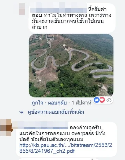 เพจคลิปข่าวทั่วไทย ได้โพสต์รูปภาพของการสร้างถนนใหม่ ทำให้เกิดวิจารณ์กันอย่างมาก บางคนว่าทำไมไม่สร้างทางตรงๆไปเลย จะสร้างทางโค้งเพื่ออะไร บางคนว่าสร้างทางโค้งถูกดีแล้ว เพราะว่าเป็นการชะลอความเร็วของรถและทำให้ลดอุบัติเหตุได้ รูปภาพที่ว่านี้จะเป็นอย่างไรพิจารณากันดูนะครับ แต่ต้องขอฝากถามผู้เชี่ยวชาญหน่อยนะครับว่า จริงๆ แล้วการสร้างทางวนแบบนี้ถูกต้องหรือเปล่า