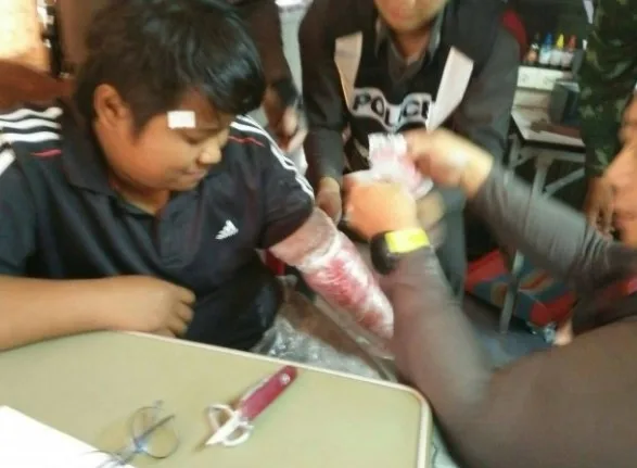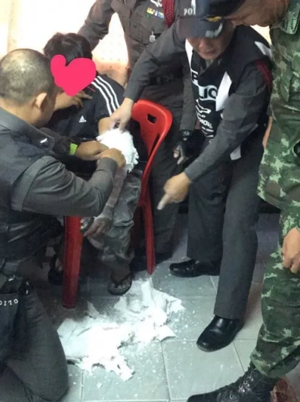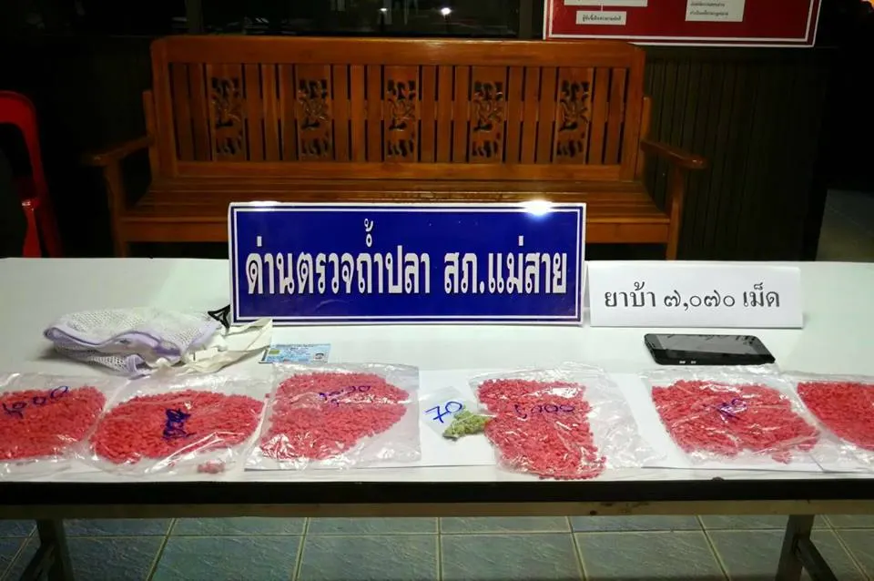 จากการตรวจสอบพบหญิงสาวคนหนึ่ง ทราบชื่อต่อมาว่า น.ส.สุรีย์พร คำเงิน โดยที่แขนด้านซ้ายใส่เฝือก เหมือนผู้ที่กระดูกแตกหักทั่วไป และยังปะพลาสเตอร์ที่ศีรษะเหมือนคนได้รับบาดเจ็บ อย่างไรก็ตามเจ้าหน้าที่พบพิรุธ จึงขอตรวจสอบที่เฝือกดังกล่าวอย่างละเอียด ปรากฎว่าไม่ได้บาดเจ็บจริง แต่ภายในเฝือกกลับพบว่าซุกซ่อนยาบ้า ชนิดเม็ดสีส้มเอาไว้จำนวน 7,000 เม็ด และสีเขียวจำนวน 70 เม็ด รวมของกลางทั้งหมดจำนวน 7,070 เม็ด จึงได้จับกุมตัวเอาไว้จากนั้นนำตัวพร้อมของกลางส่ง สภ.แม่สาย เพื่อสอบสวนขยายผลตามกฎหมายต่อไป