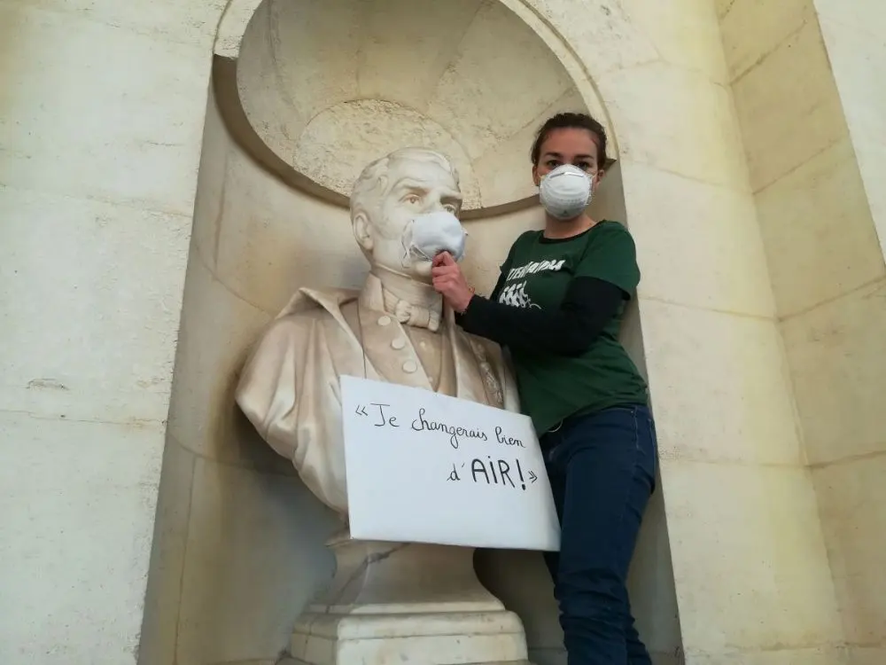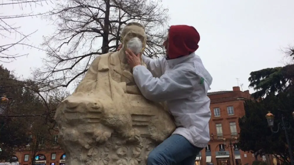 จัดไป!! ชาวฝรั่งเศสสวมหน้ากากอนามัยให้รูปปั้น เคลื่อนไหวเชิงสัญลักษณ์เร่งรัฐบาลแก้ปัญหามลพิษ