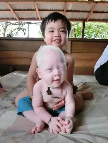 แต่ในความเป็นจริงแล้ว เด็กผิวขาวที่เห็น คือเด็กที่มีลักษณะผิวเผือกหรือที่เรียกว่าเป็นอาการอัลบินิซึม (albinism) เกิดจากยีนด้อยในพันธุกรรมที่ส่งผลให้ร่างกายไม่สามารถสร้างเอนไซม์ "เมลาโนโซท์ ไทโรซิเนส" เพื่อเปลี่ยนโปรตีน "ไทโรซีน" ให้กลายเป็น "เมลานิน" เม็ดสีที่ทำให้ผิวของเรามีสีต่างๆ ดังนั้น จึงปรากฏเป็นผิวขาวซีดอย่างที่เห็น