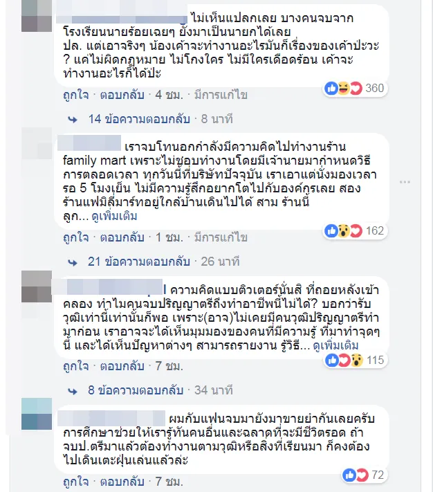 เพจ Drama-addict โพสต์เรื่องราว ผู้หญิงคนหนึ่งจบป.ตรี แต่มาทำงานเป็นคนกวาดถนน จนได้รับคำชื่นชมมากมายบนโลกออนไลน์ แต่มีการ เอาไปประเด็น : จบปริญญาตรี แต่ไปกวาดถนน ถอยหลังเข้าคลอง? สะท้อนระบบการศึกษาเฮงซวย???