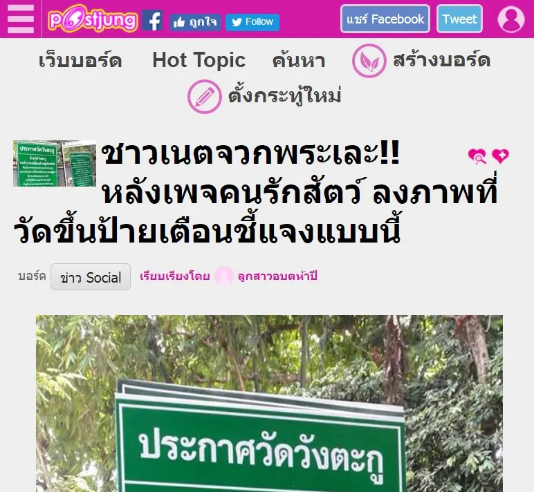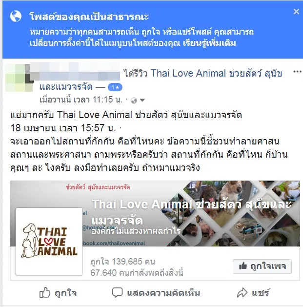 โพสต์ปลิวไปเรียบร้อย!! จากเพจคนรักสัตว์ ลงข้อความและคอมเม้นท์หมิ่นพระ