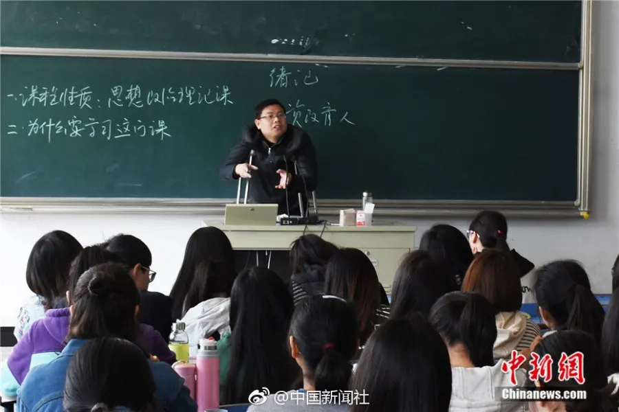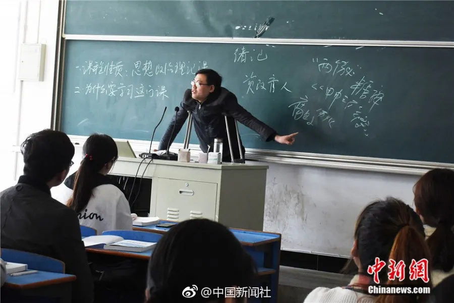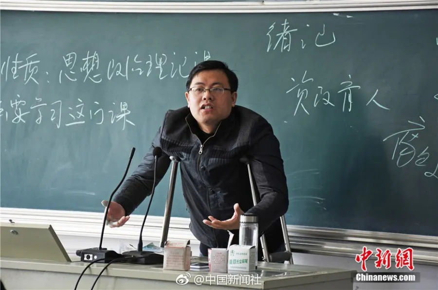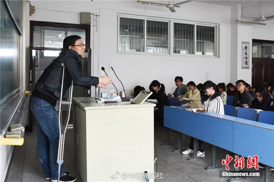 วางป๋อหวู่ เป็นอาจารย์ท่านหนึ่งในคณะนิติศาสตร์ มหาวิทยาลัยครูอันชิ่ง ก่อนหน้านี้ เขาไม่ได้ระมัดระวัง ทำให้หกล้มจนกระดูกส่วนขาของเขาหัก ไม่กี่วันมานี้ เพื่อไม่อยากที่จะทำให้นักเรียนล่าช้าในบทเรียน เขาไม่ฟังคำแนะนำของหมอที่บอกให้เขาพักผ่อนมาก ๆ และหลังจากที่ตัดเฝือกออกเขายืนกรานที่จะกลับไปสอนนักเรียน เขาบอกว่า “ในฐานะคุณครูคนหนึ่งต้องเคารพในอาชีพนี้ แม้ว่าการเดินทางจะไม่สะดวก ก็ควรจะมุ่งมั่นพยายามอย่างเต็มที่”
