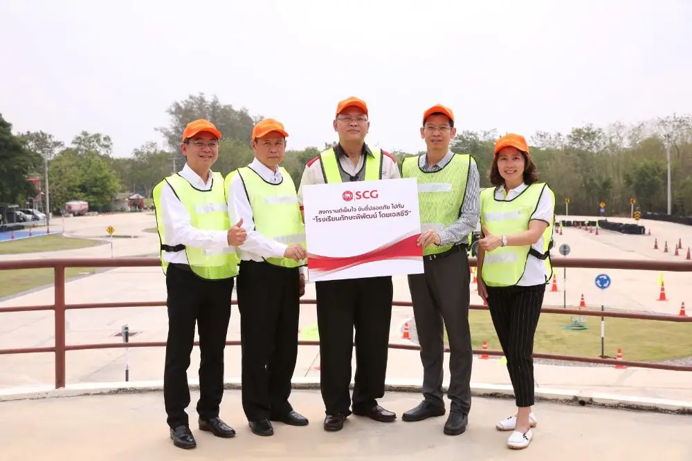โรงเรียนทักษะพิพัฒน์ (Skills Development School) โดยเอสซีจี นำโดย ชลัช วงศ์สงวน (กลาง) ผู้บริหารโรงเรียนทักษะพิพัฒน์ โดยเอสซีจี พร้อมด้วย วีนัส อัศวสิทธิถาวร (ขวาสุด) ผู้อำนวยการสำนักงาน Enterprise Brand Management เอสซีจี และอนุวัตร เฉลิมไชย (ซ้ายสุด) ผู้อำนวยการสำนักงาน Brand Management and Communication เอสซีจี จัดกิจกรรม “สงกรานต์เย็นใจ ขับขี่ปลอดภัย” ต้อนรับเทศกาลสงกรานต์ มุ่งแก้สาเหตุหลักของอุบัติเหตุบนท้องถนน โดยแนะ 5 เคล็ดลับขับขี่ปลอดภัยแก่ผู้เดินทาง ซึ่งเป็นส่วนหนึ่งของหลักสูตรที่ได้รับการรับรองในระดับสากล การันตีความเชื่อมั่นด้วยผู้ผ่านหลักสูตรแล้วเกือบ 1.2 แสนคน เพื่อลดอุบัติเหตุและความสูญเสียในช่วงเทศกาลสงกรานต์อย่างยั่งยืน โดยมี พรหมมินทร์ กัณธิยะ (ที่ 2 จากซ้าย) ผู้อำนวยการสำนักงานเครือข่ายลดอุบัติเหตุ และ ธนะพงศ์ จินวงษ์ (ที่ 2 จากขวา) ผู้จัดการศูนย์วิชาการเพื่อความปลอดภัยทางถนน ร่วมกิจกรรม ณ โรงเรียนทักษะพิพัฒน์ จ.สระบุรี เมื่อวันก่อน