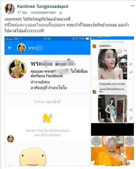 23 เมษายน 2561 เกิดเรื่องฉาวเผยแพร่ในโลกออนไลน์ เมื่อสมาชิกเฟซบุ๊กที่ชื่อว่าคุณ Kantinee Tungjessadaput ได้โพสต์เรื่องราวที่ได้พบมากับตัว โดยเธอถูกสมาชิกเฟซบุ๊กรายหนึ่งที่ใช้ชื่อเป็นฉายาของพระสงฆ์ และใช้ภาพโปรไฟล์เป็นพระสงฆ์ ได้อินบ็อกซ์มาแชทด้วยข้อความที่หมิ่นเหม่ในทางลามกอนาจาร