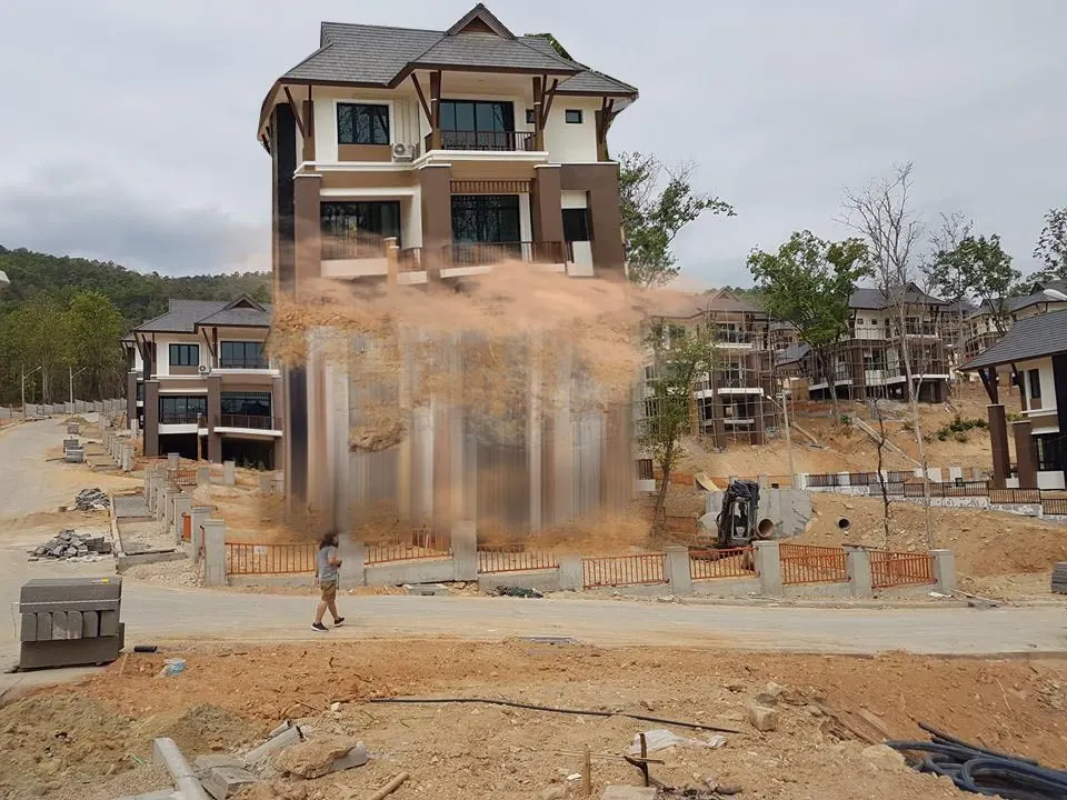 ภาพสุดท้ายเป็น การตัดเสา ยกบ้าน ฝีมือคนไทย ทำกันเยอะ