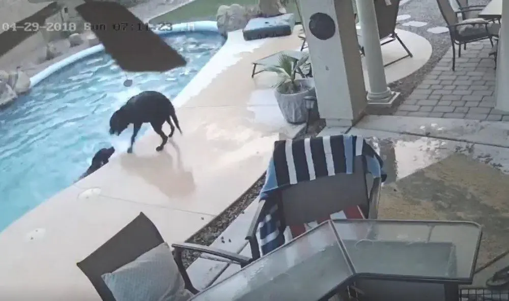 หมาตัวหนึ่งตกลงไปในสระว่ายน้ำ และไม่มีใครเห็น แต่มีหมาอีกตัวเห็น และมันก็กระโดดลงไปช่วยหมาที่อยู่ในสระว่ายน้ำ