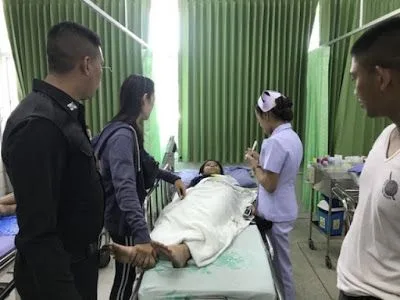 จากนั้นตนจึงจอดรถลงไปสอบถาม และพบว่าน้องหมดแรงแต่ยังมีสติ จึงอุ้มน้องแอม มาใส่รถเก๋งของตน จากนั้น ได้ขับกลับไปส่งโรงพยาบาลเกาะสมุย และเฝ้าดูอาการของน้องในห้องฉุกเฉิน หลังจากเห็นว่าน้องอาการดีและปลอดภัยแล้ว จึงเดินทางไปฝึกแถวเพื่อรอการมาตรวจของผู้บังคับบัญชาต่อ ในเบื้องต้น คาดว่าน้องคงเป็นลม เนื่องจากสภาพอากาศในขณะนั้นร้อนมาก