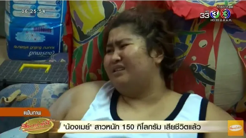 เรื่องเล่าเช้านี้ รายงานว่า "น้องเมย์" สาวอ้วนหนัก 150 กก. ที่ บิณฑ์ บรรลือฤทธิ์ เคยทุบผนังบ้านพาตัวส่งโรงพยาบาล ล่าสุดแน่นหน้าอก เสียชีวิตกะทันหัน