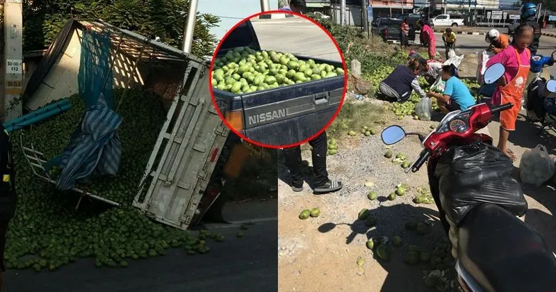 ล้มทั้งยืน! รถ 6 ล้อขนมะม่วงพลิกคว่ำ ชาวบ้านแห่ช่วยเก็บ แต่เจ้าของกลับน้ำตาไหล มันไม่ใช่อย่างที่คิด!