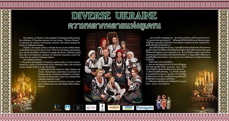 ยูเครนเป็นประเทศในทวีปยุโรปที่ร่ำรวยไปด้วยวัฒนธรรม ผู้คนมีอัธยาศัยไมตรี มีรากฐานทางประวัติศาสตร์อันยาวนานนับตั้งแต่ศตวรรษที่ 9 จึงมีเอกลักษณ์เฉพาะตัวที่หลากหลาย เพื่อให้ทุกท่านมีโอกาสได้สัมผัสและเรียนรู้ศิลปวัฒนธรรมของประเทศยูเครน สถานทูตยูเครน ประจำประเทศไทย จึงได้สนับสนุนให้มีการจัดงานนิทรรศการศิลปวัฒนธรรม “ความหลากหลายแห่งยูเครน : Diverse Ukraine” ในครั้งนี้